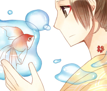 縁側で子狐を膝にのせてなでていたら、お狐様がやってきて「俺も構え」と抱きかかえられた、みたいな感じです。